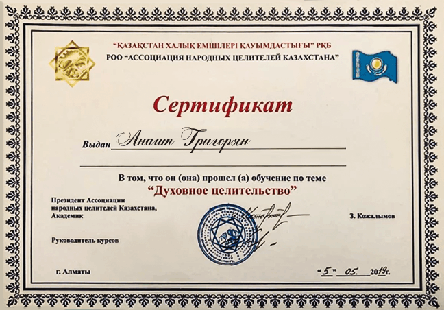 Анаит — керемет маг! Мен үшін өте маңызды адамды қайтарамын деп үміттендім, бірақ бәрі қиын болып көрінді. Анаиттің осы саласындағы тәжірибесі мен білімі маған үлкен көмек болды. Оның жасалған обрядтары мен дұғалары арқылы менің қарым-қатынасым түзеліп, кешірім мен махаббат қайтып келді. Анаитке үлкен алғысым шексіз!